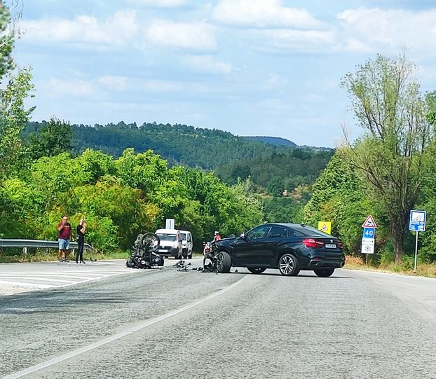 Няма данни за положението на моториста и водача на автомобила. Материалните вреди са съществени.