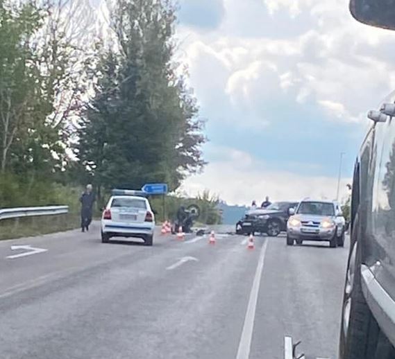Този следобяд са се блъснали мотор и джип, осведомят очевидци. На място са пристигнали три екипа на полицията и медици.