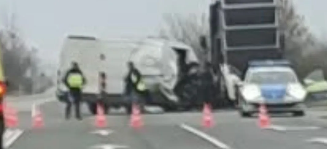 Произшествието е на разклона за „ Макдоналдс “. По бял бус се виждат съществени материални вреди.