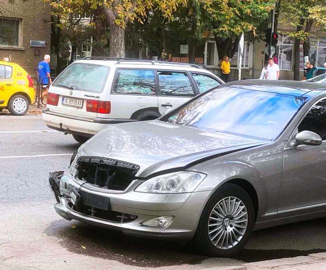 Мерцедес е със съществени вреди по предницата, другата кола е със следи от непряк удар.