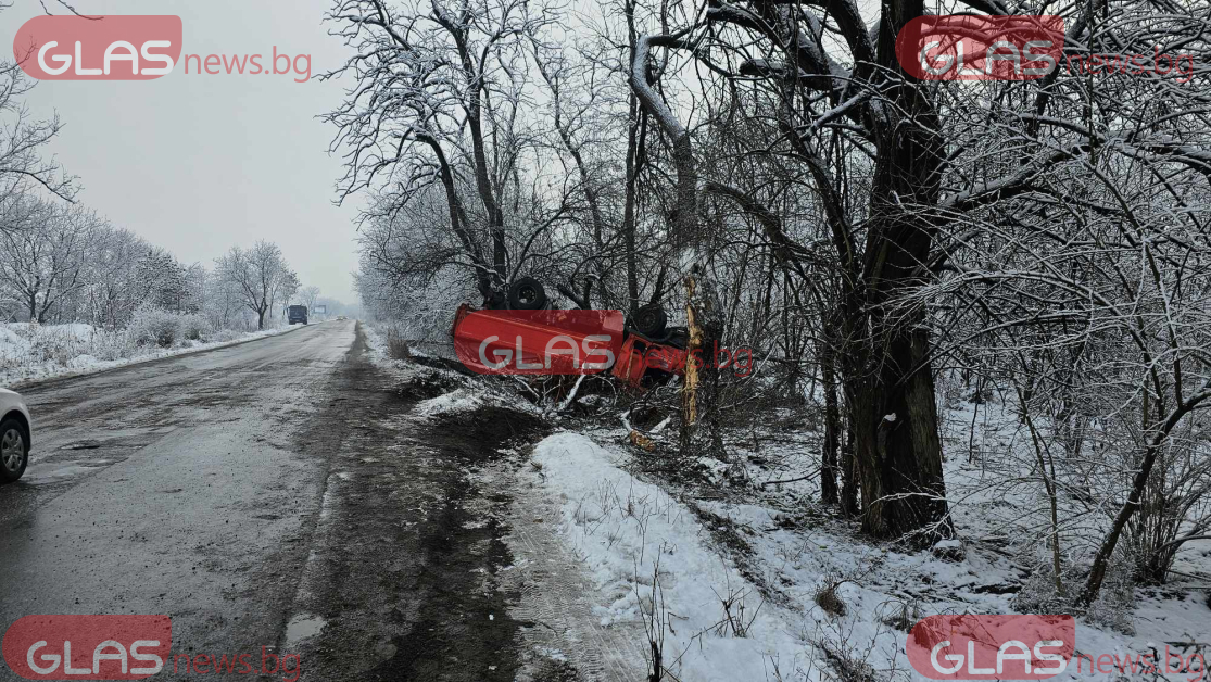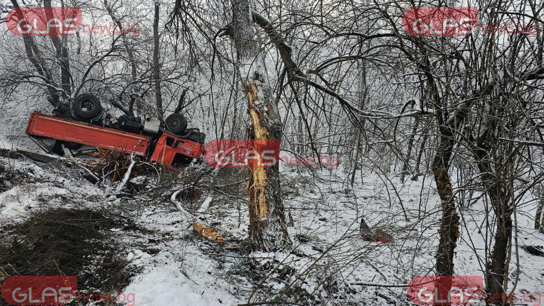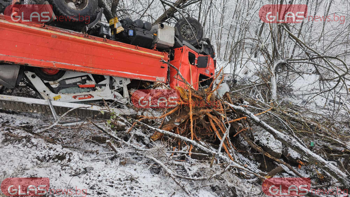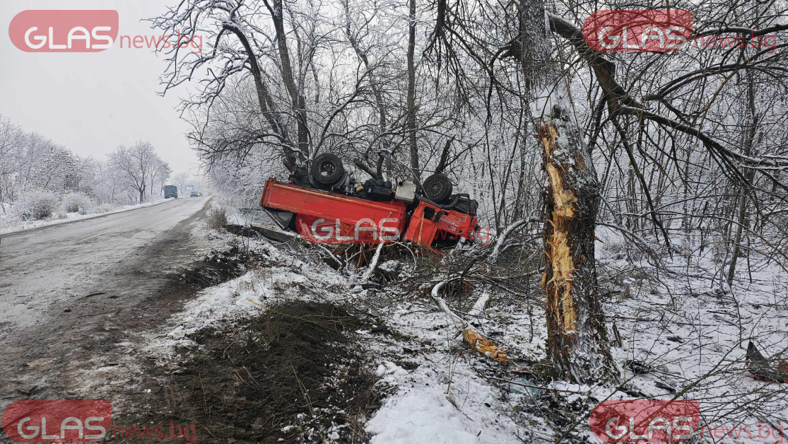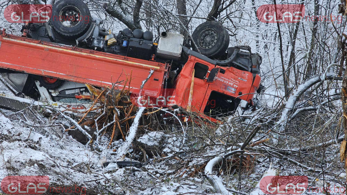 Камион се преобърна по таван край Пловдив СНИМКИ