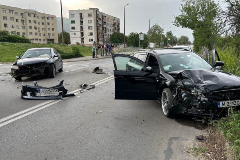 Последвал заплашителен удар, след който и двата автомобила са със съществени материални вреди.