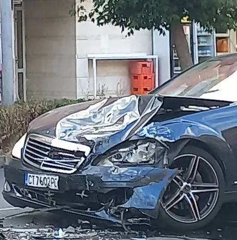 Блъснали са се два леки автомобила и маршрутка. Щетите по машините са обилни. Предницата на една от колите е помляна, като по пътното платно има изтекли авномобилни течности.