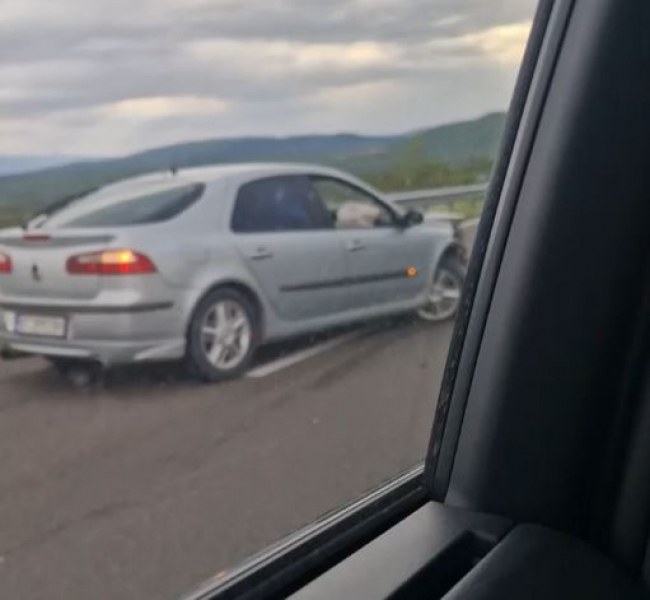 Лек автомобил, който е със следи от тежък удар, е спрян в лявата лента на трасето. По предницата на машината има съществени вреди, отворили са се и въздушни възглавници. Зад колата е спрян Мерцедес, само че не е известно взе участие ли в случая.