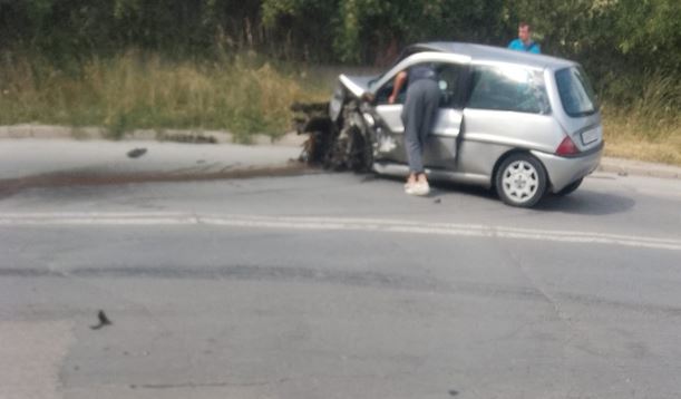 От силата на удара едната машина е изхвърлена в крайпътната канавка, тя е със следи от непряк удар. Другата кола е с помляна предна част и е на пътното платно.