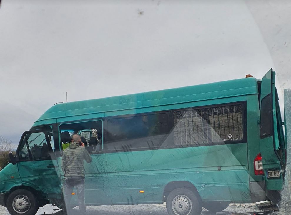 Бус и лек автомобил са се блъснали на отбивката за село Славяново.