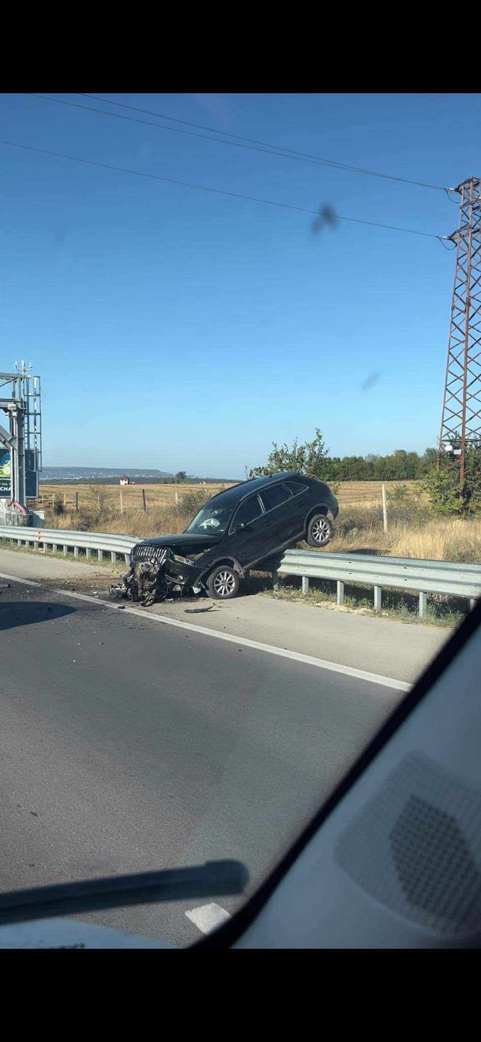 От фотосите се вижда, че джип " Ауди " е изхвърчал на мантинелата.