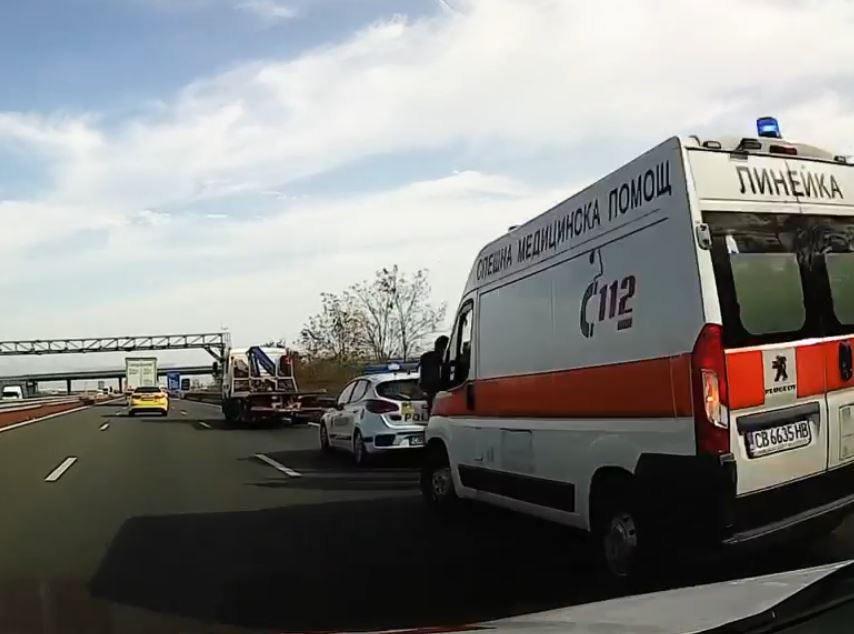 На място има пътна помощ, кола за спешна помощ и екип на КАТ.