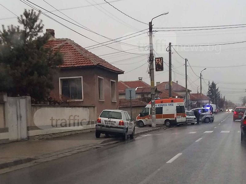 Страшен сблъсък между две коли край Пловдив, има линейка и полиция