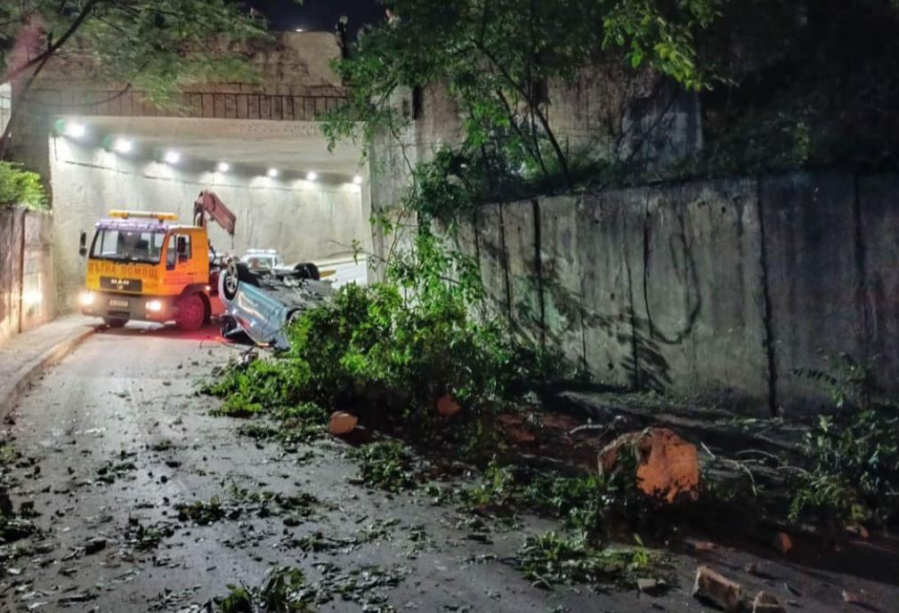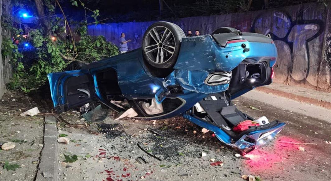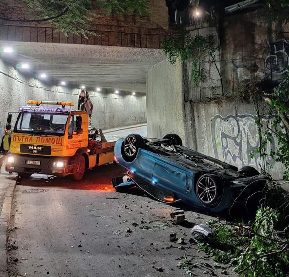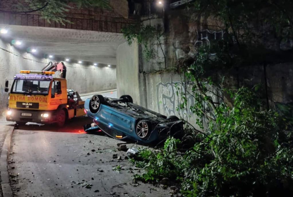 След удара една от колите се врязала в бетонна стена и паднала от моста на долното равнище на пътния възел.