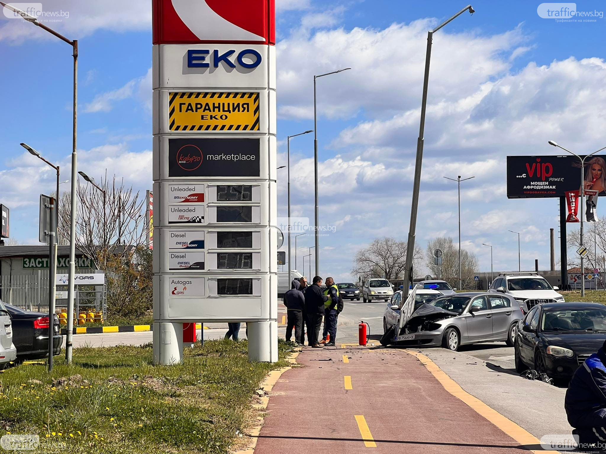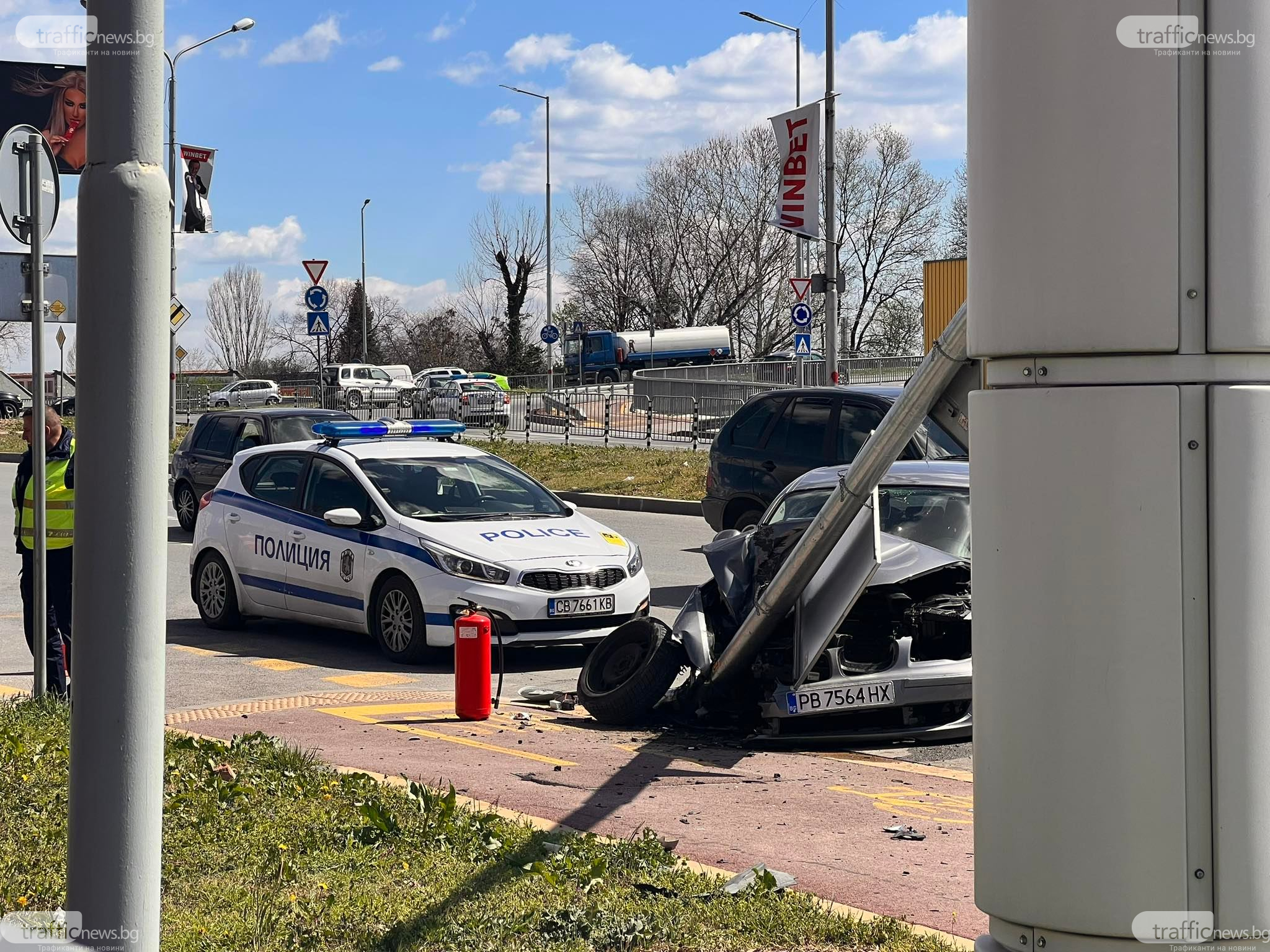 От удара стълбът е накривен. Знаците от него са отхвръкнали, видя кореспондент на TrafficNews .