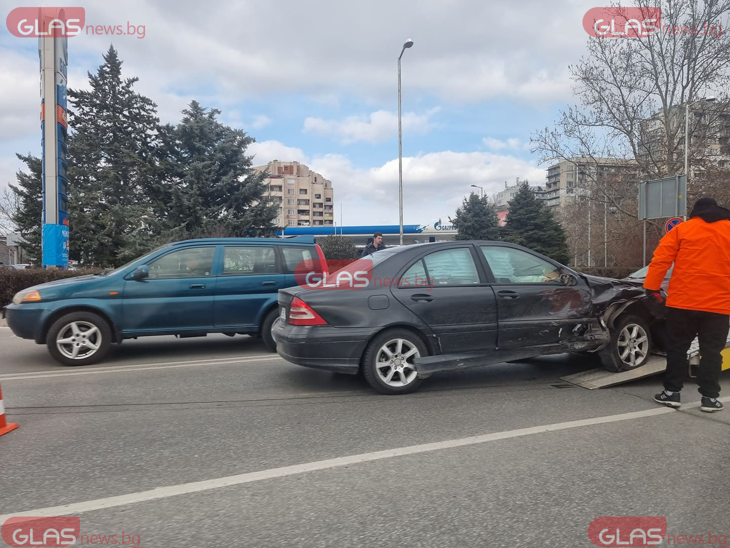 Тежка катастрофа между три коли на кръстовище в Пловдив СНИМКИ