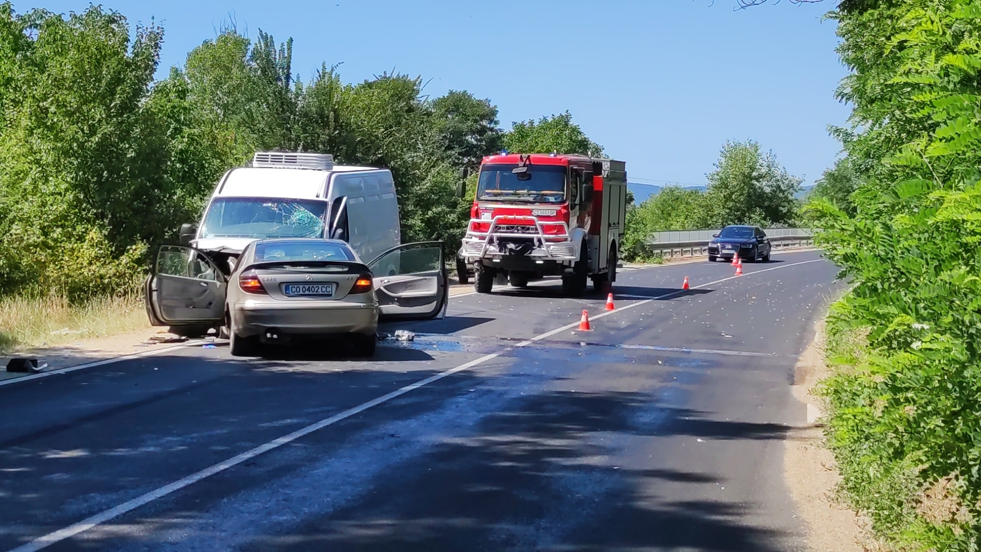 Лек автомобил " Мерцедес " се е блъснал челно в микробус при разклона за Павел баня.