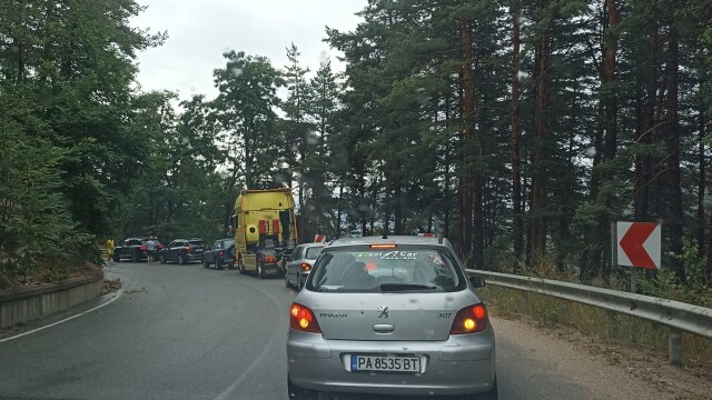 На пътя стотици коли чакат в колона, до момента в който тече огледът. Обходният маршрут е Юндола – Белово.