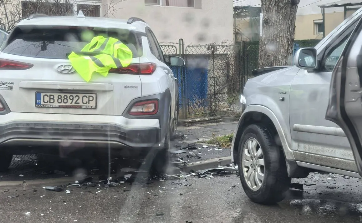 " Хонда " и " Хюндай " са се блъснали на улица " Народно хоро ". Автомобилите имат следи от преден удар по предниците си, като единият е изхвърчал на тротоара.