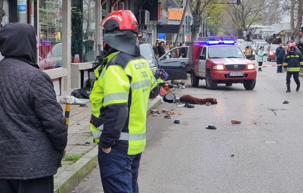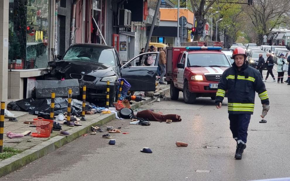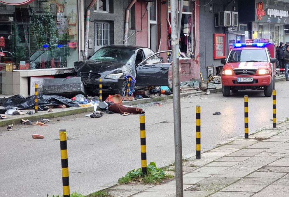 По първична информация водач е помел и умъртвил двама души - мъж и жена, на тротоар в града и по-късно се е блъснал в магазин, предава.
