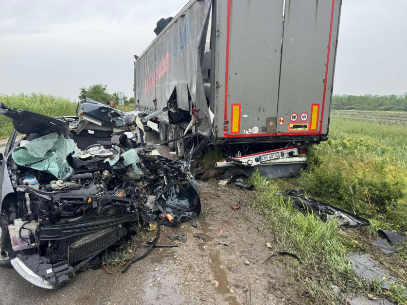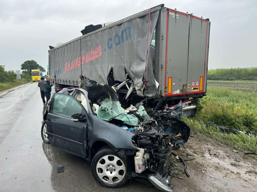 По тяхна информация полуремарке на ТИР е навлязло в насрещната лента и е блъснало идващия отсреща автомобил.