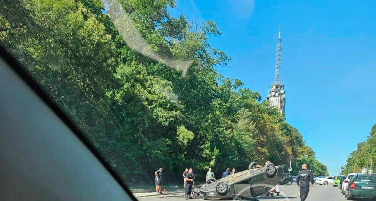 Кола се е обърнала по таван. По първична информация има минимум двама души, които са тежко ранени.