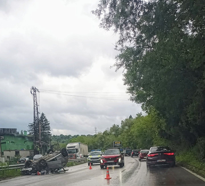 Тежка катастрофа до София, кола е по таван СНИМКА