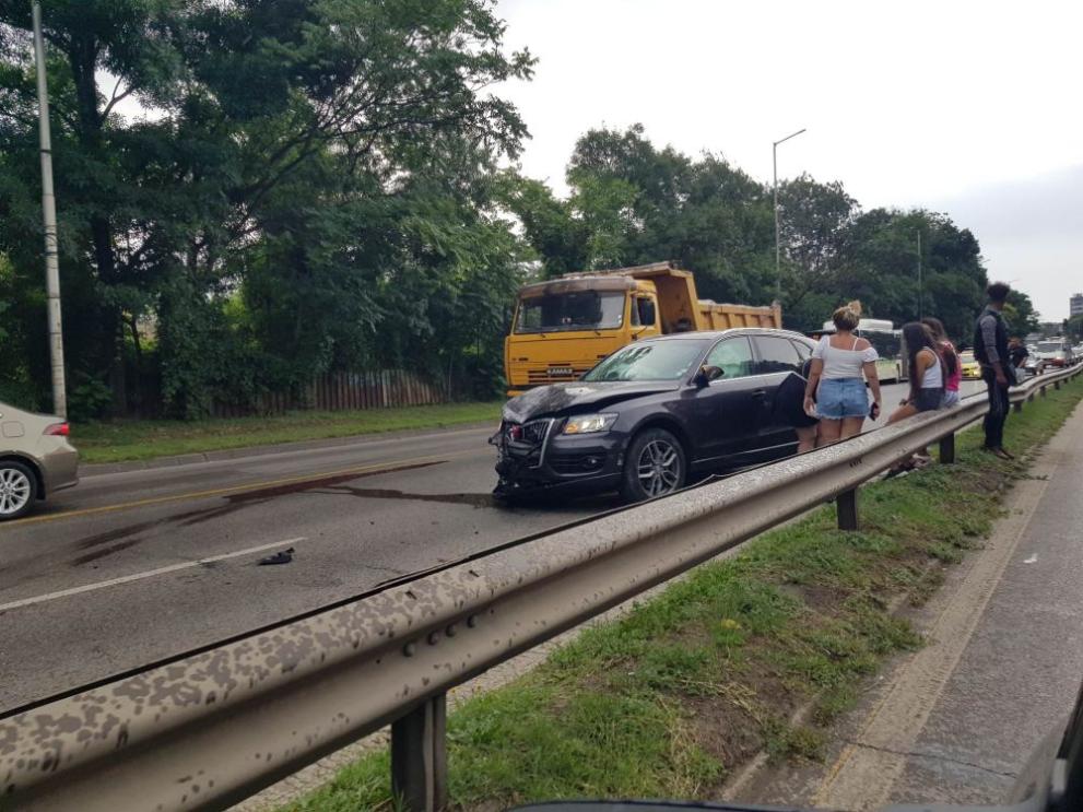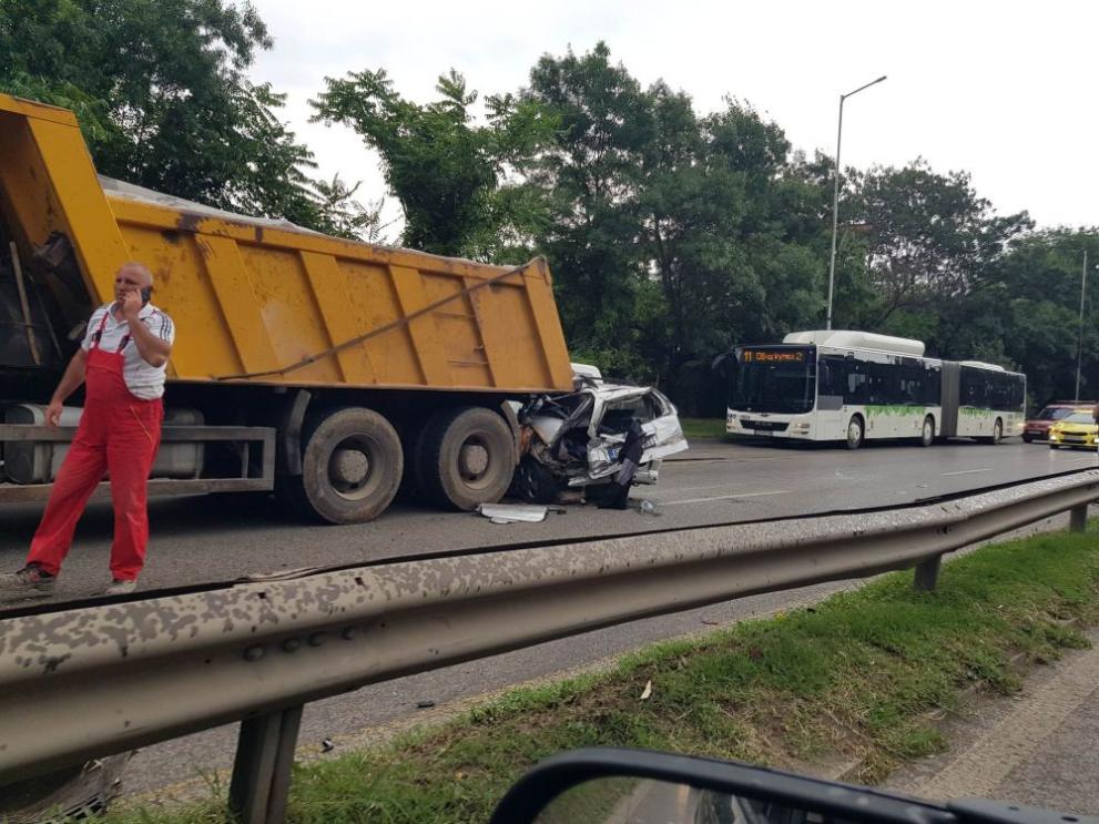 В конфликта са взели участие две транспортни средства. Вследствие на случая един от колите се е заклещил под камион.