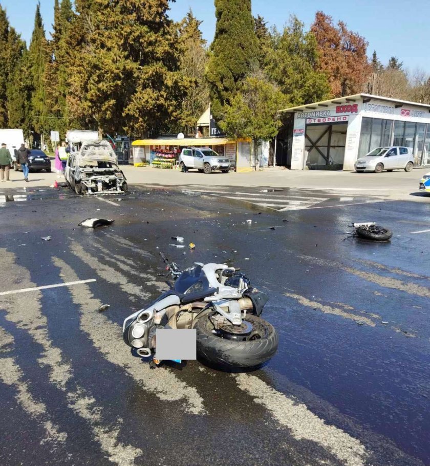 Катастрофата е станала около 9:30 ч. в региона на гробищния парк в морския град. Ударът е бил толкоз мощен, че се е откъснала предната гума на мотора.