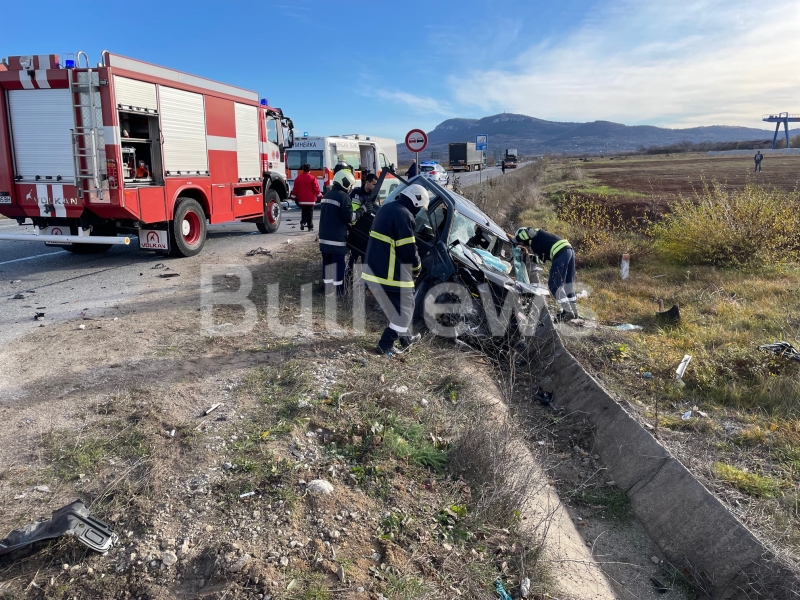 На местопроизшествието дойдоха 2 пожарни, 2 коли за спешна помощ и 2 полицейски патрула. Огнеборците срязаха смазаната кола, с цел да извадят двамата пасажери. Като по знамение дядото и внучето са невредими и са в положително общо положение.