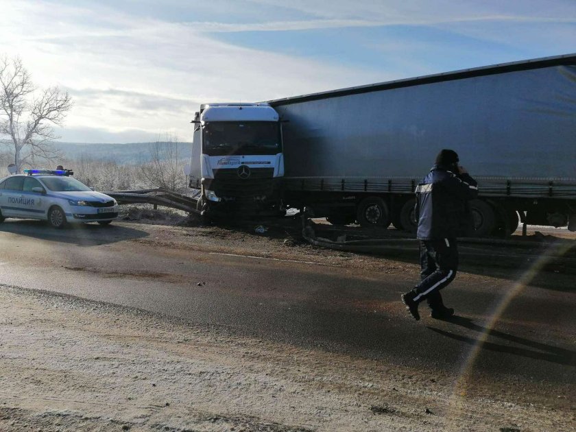 ТИР се вряза в мантинела на главния път Е79 Враца - Мездра