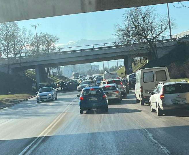 Две коли са се сблъскали под надлез " Надежда ". По машините има съществени материални вреди, еднака кола е в канавката, а другата се е завъртяла на пътното платно.