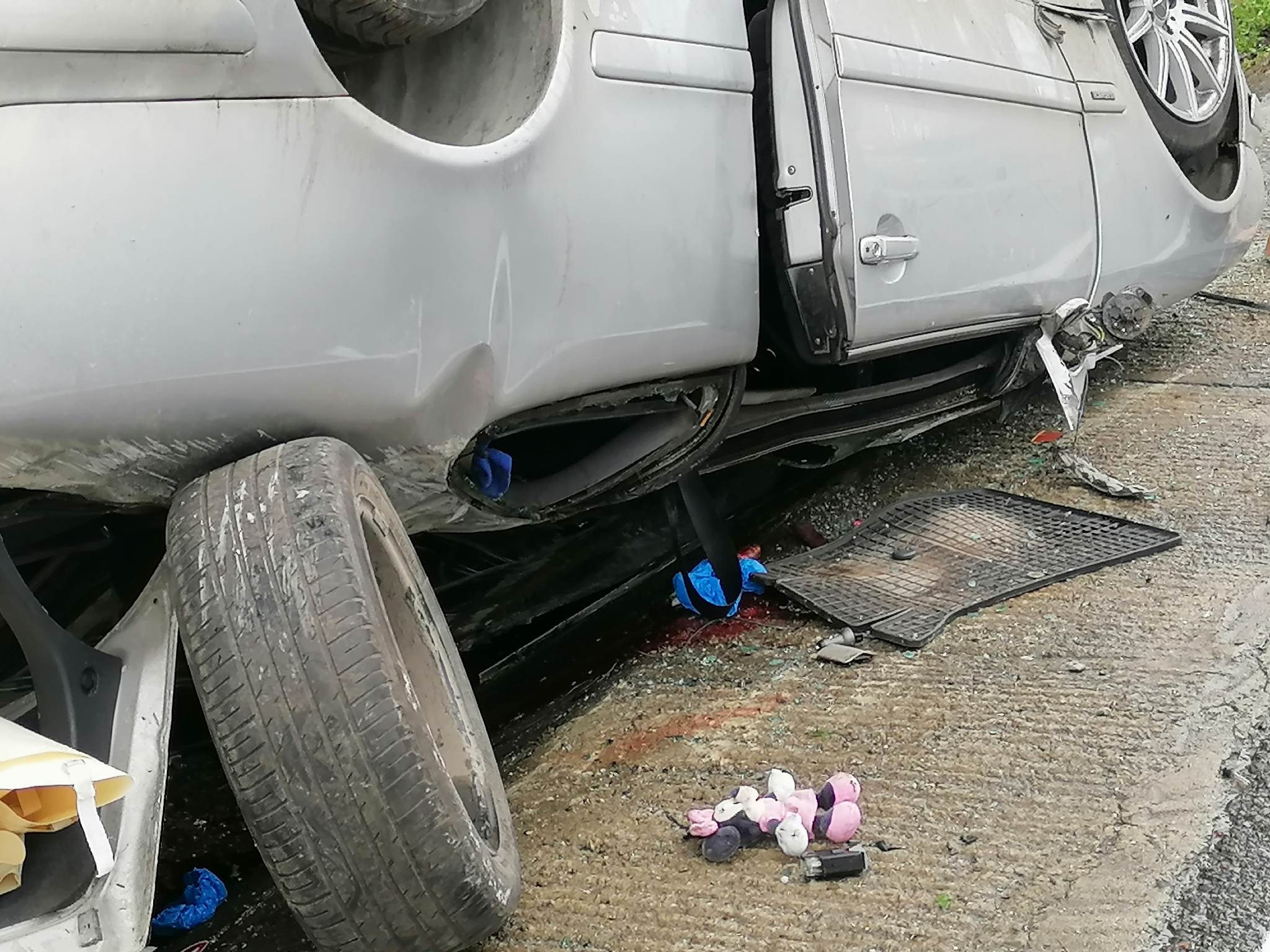 В колата обаче е пътувала единствено потърпевшата жена. На мястото на случая има екипи на полицията, които оглеждат местопроизшествието в опит да открият аргументите колата да сервира по подобен начни на пътя. Вероятно се касае за шофиране с несъобразена с пътните условия скорост и поднасяне – все още в сектора продължава да вали дъжд и настилката е мокра.