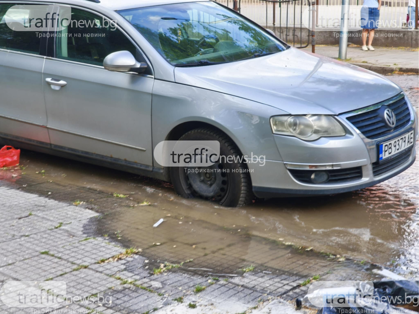 Тежка авария наводни улица в центъра на Пловдив, чул се гърмеж преди водата да изригне от тротоара