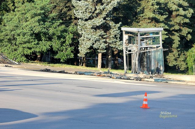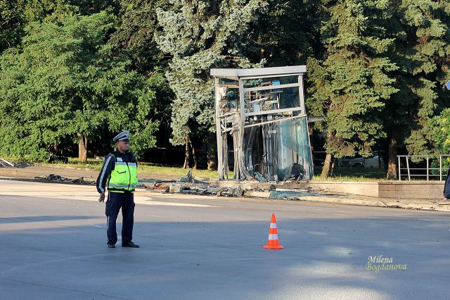 Асансьорът на метростанцията безусловно е „ надробен “. Част от защитната бариера, разделяща плътното платно от тротоара, също е разрушена до основи.