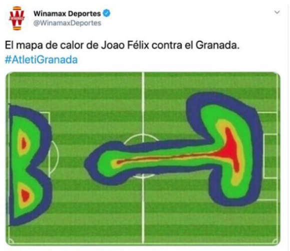 Тежката загуба с 1:6 от не се оказа единственият проблем за. Малко след тежкото проваляне на тима от испанския хайлайф един от спонсорите му искрено се подигра с клуба. На профила на букмейкъра Winamax Deportes в Twitter се появи изображение, което изобразявало зоните, в които нападателят на Атлети е играл най-често. Това е т.нар “heat map”, показващо къде въпросният футболист е бил главно по терена. В случая картата на Феликс изобразява нещо, което съгласно AS е мъжки сексуален орган, а вратата на Гранада - дупе. Въпросният Жоао Феликс беше определен за състезател на мача, откакто вкара един гол, подаде за различен и завоюва дузпа.