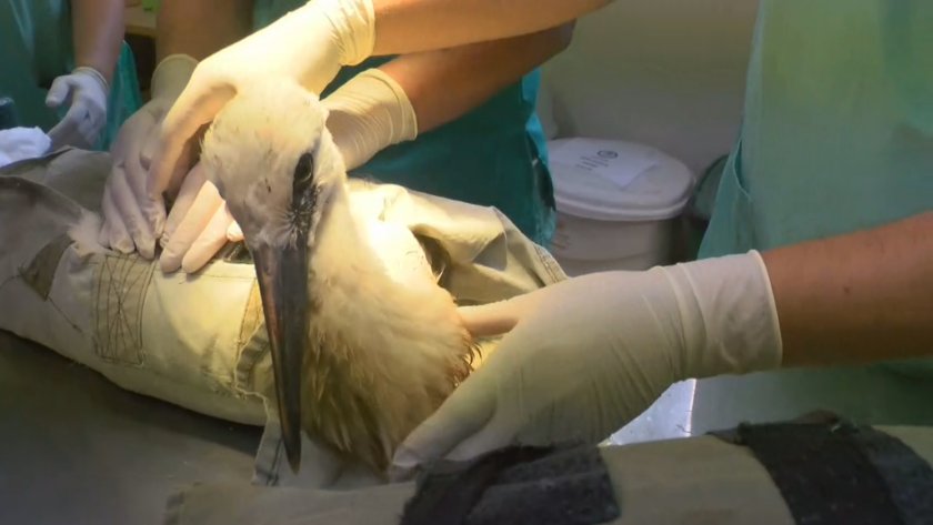 Едното щъркелче е със счупени крайници и разкъсна рана на коремната стена и има риск да не оцелее и да бъде приспано.