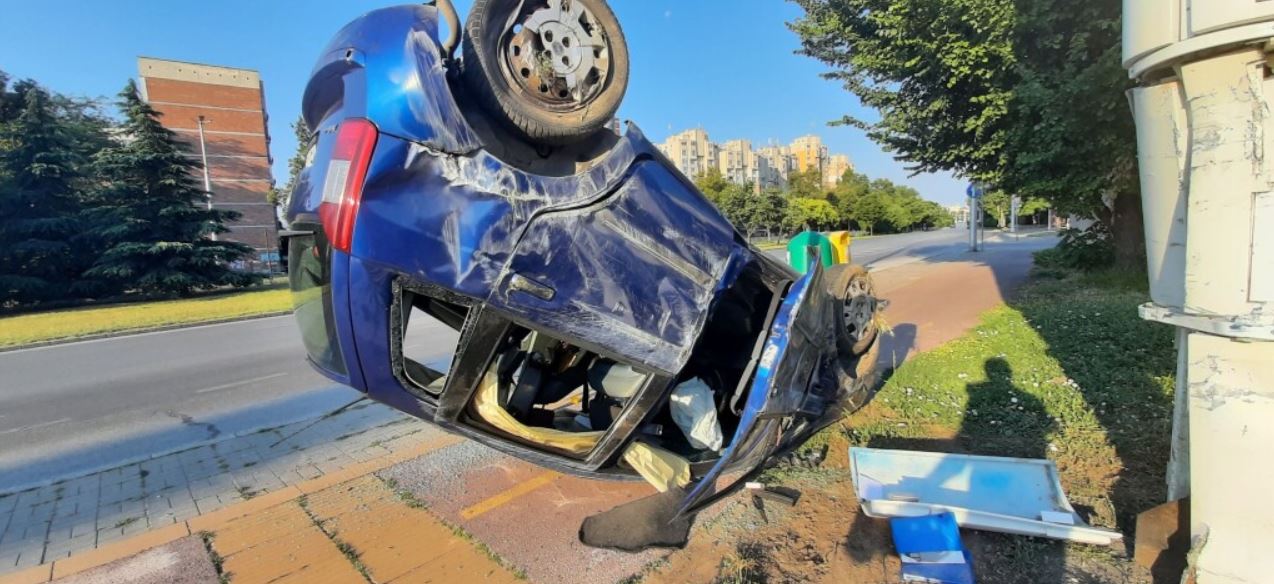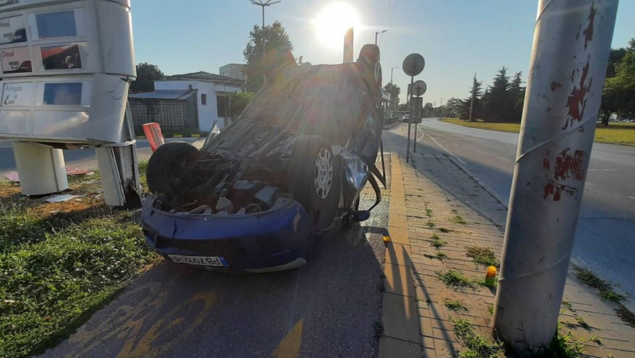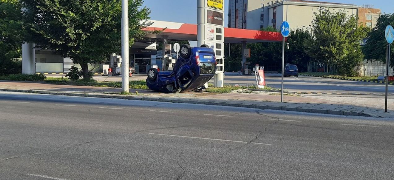 След удара се прекатурна и блъсна в рекламно табло пред входа на бензиностанция.