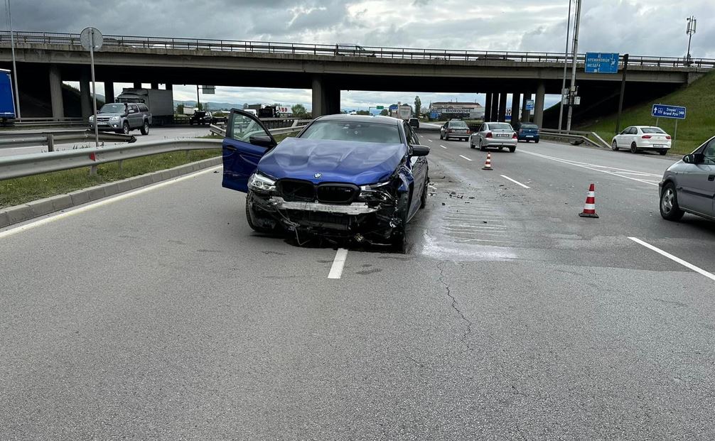 Лек автомобил БМВ е със следи от сериозен удар. Произшествието е станало на Ботевградско шосе.