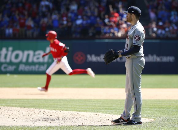 Тексас навъртя 10 точки в границите на три набези. В 1-вия ининг Джоуи Гало прибра двама с троен шлагер и довърши обиколката си при саможертвен флай на Хънтър Пенс за 3:0. В 3-тия Хюстън се разписа със сакрифайс флай на Майкъл Брантли, само че в долната част Гало заслужи RBI с навън по земя, Пенс удари двоен хоумрън, а Логан Форсайт завъртя соло обиколка за 7:1.