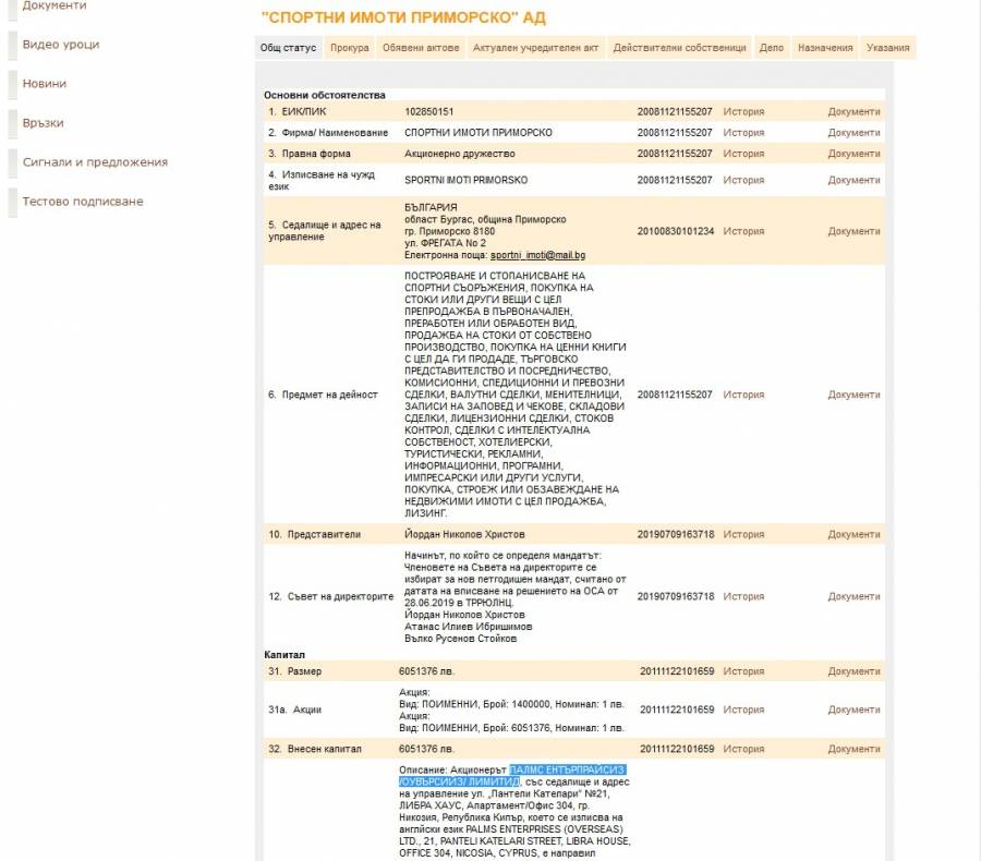 Христов е представителят на " Спортни парцели Приморско " АД. Именно в това акционерно сдружение преди всичко като вносители на капитал (внесеният капитал е 2 966 247 лева.) е кипърската офшорка. Точно това е офшорката, която внася през 2014 година 1 750 000 евро във компания – компанията, в която манекенката Борислава Йовчева и татко ѝ вземат участие с по 1500 евро всеки. Адресът на Emma BGS SL е този на прословутата къща в Барселона, за която някогашният началник на правния отдел на " Лукойл " Александър Чаушев твърди, че е негова благосъстоятелност. А лицето на тенис клуба в Банкя Иван Саздов , който Елена Йончева поради мненията ѝ за къщата в Барселона, е бил в ръководството на " Спортни парцели Приморско " АД от 2008 до 2011 година – в Съвета на шефовете. Саздов е част от така наречен Кръг Банкя - " остарели приятели от службите и милицията ", по.