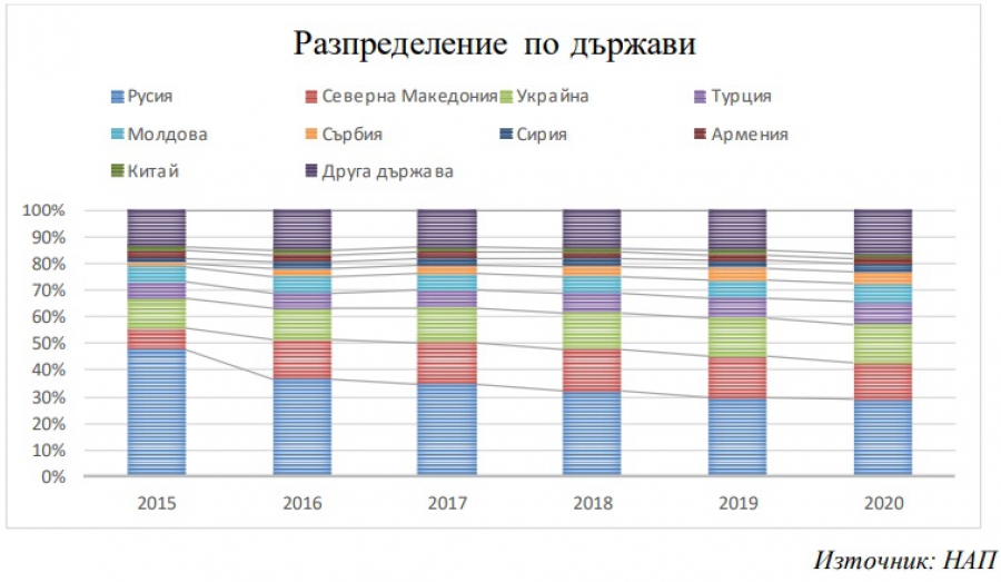 Според отчета, обичайно първото място се държи от жителите на Русия, само че по отношение на 2015 година, техният брой е намалял с цели 30%. В същото време жителите на Северна Македония, Украйна, Турция, Молдова, Сърбия и Сирия се усилва на родния трудов пазар.