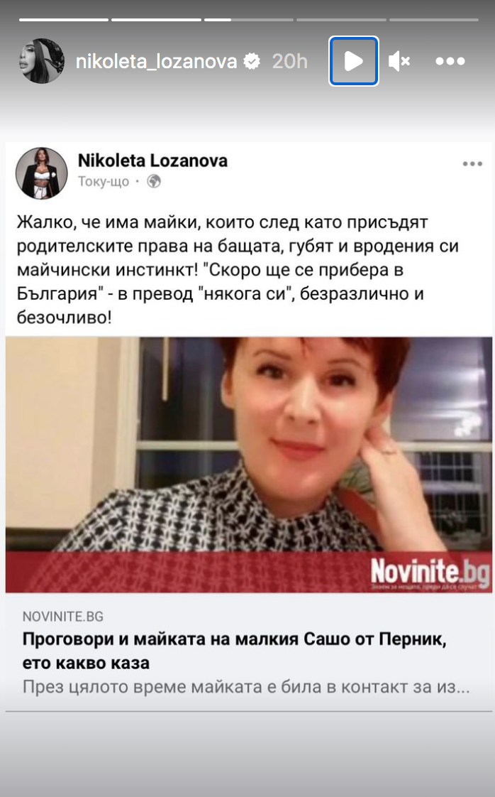 От информацията в пресата стана ясно, че майката на момчето го е оставила и отишла да живее в Англия, което провокира доста отвращение от родните майки, една от които самата Николета Лозанова. Ето какво написа тя по случая: