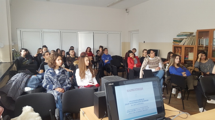 Сабина Петрова, контрольор в „ Детска педагогическа стая “ към 5-то РПУ, описа на учениците какво е въздействието на наркотичните субстанции върху организма. Екзалтация, еуфория, нараснала самокритика, промени в настроението, са единствено част от краткосрочните резултати на използването на амфетамини и метамфетамини. Дълготрайната приложимост на марихуана води до болестта „ шизофрения “.