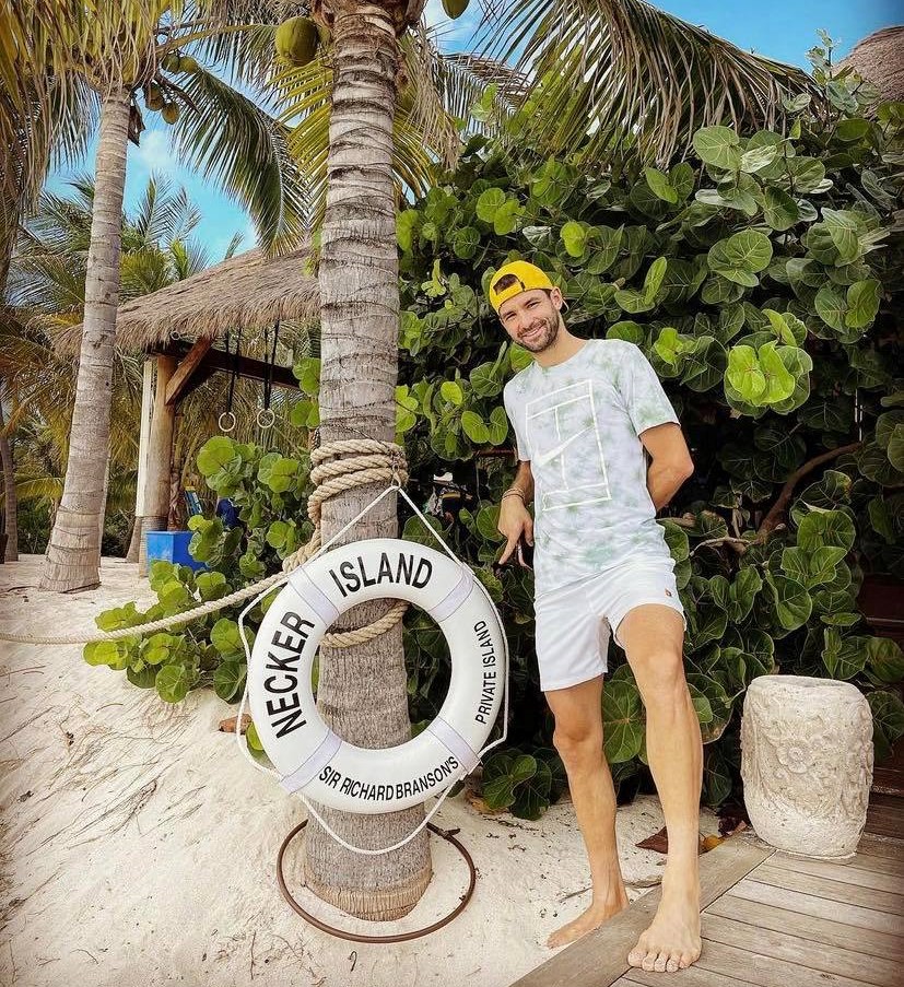 Тенисистът Григор Димитров се отдаде на постоянна отмора след Мастърса в Париж. Той бе поканен от милиардера Ричард Брансън на частния му остров Некер, а Григор показа няколко фрагмента от слънчевата почивка.