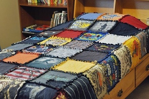 Просто съберете всички тениски и ги пришийте върху остаряло леко одеяло.