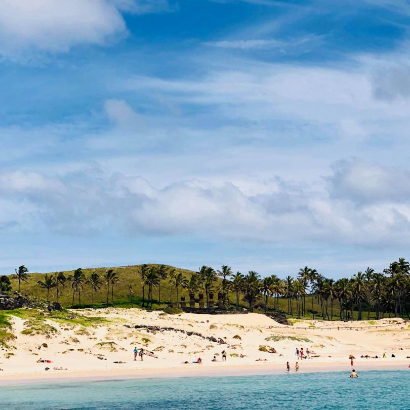 Обратно към Чили - затвориха парка, ние се чудехме какво да вършим, проектът беше оттова да отидем до Аржентина, след това до Боливия. С мой доста непосредствен другар и с още едно момче взехме решение да отидем на Великденските острови, които до този миг не знаех, че принадлежат на Чили. И с изключение на за огромните глави, нямах никаква визия какво има там. Купихме билети и отидохме. Както бяхме със зимните облекла, със специфичните обувки за планина, огромните раници, отидохме на острова, където беше 25 градуса, грееше слънце, плаж. Но ние изобщо не сме готови, тъй като не сме ревизирали прогнозата за времето и не трябваше да се намираме въобще там (смее се).
