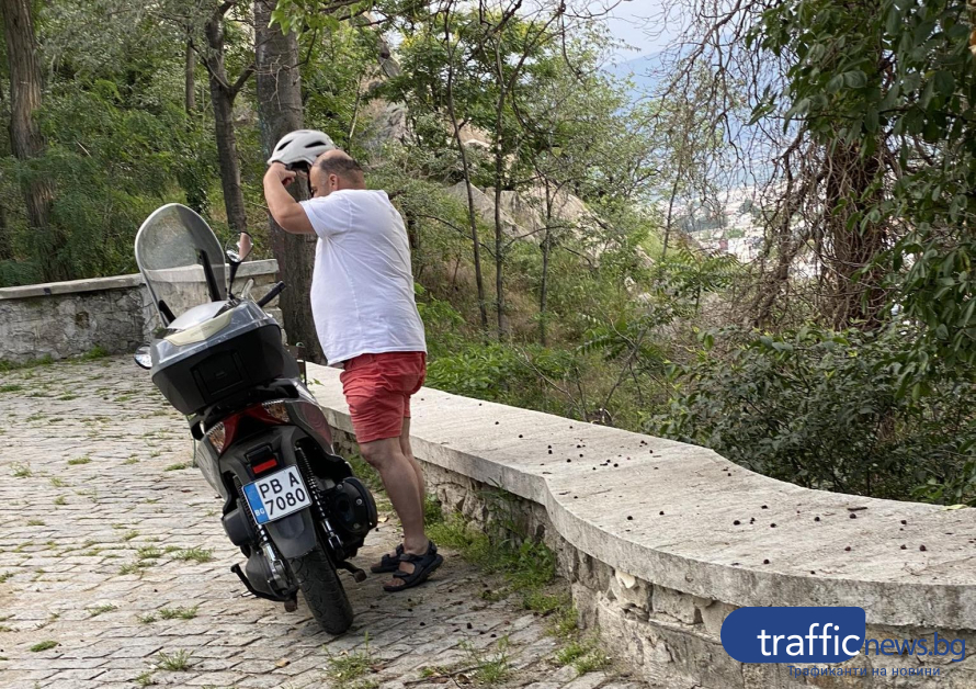 Въпросният господин явно е решил да се наслаждения на превъзходната панорама, която се разкрива към Стария град от площадката под Часовниковата кула, само че без това да му коства някакви старания. В случая минимални, защото от подножието на хълма до въпросната площадка са не повече от 500 метра. Но, съгласно наш четец, той просто се качил с мотоциклета си до паметника на Христо Г. Данов, паркирал го на сянка, а по-късно се настанил на една от пейките с аспект към града.