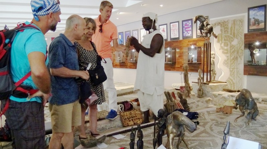 За да финансират пътуването си, продаваха тия дни в изложба Тракарт, чийто собственик Жорж Трак е един от двамата основатели и спонсори на поканата, сувенири- дървени и глинени статуетки, декорации. Преди две години Жорж Трак, ваятел и хазаин на оживени културни прояви в Пловдив, посети догоните в Мали и донесе забавни фотоси.