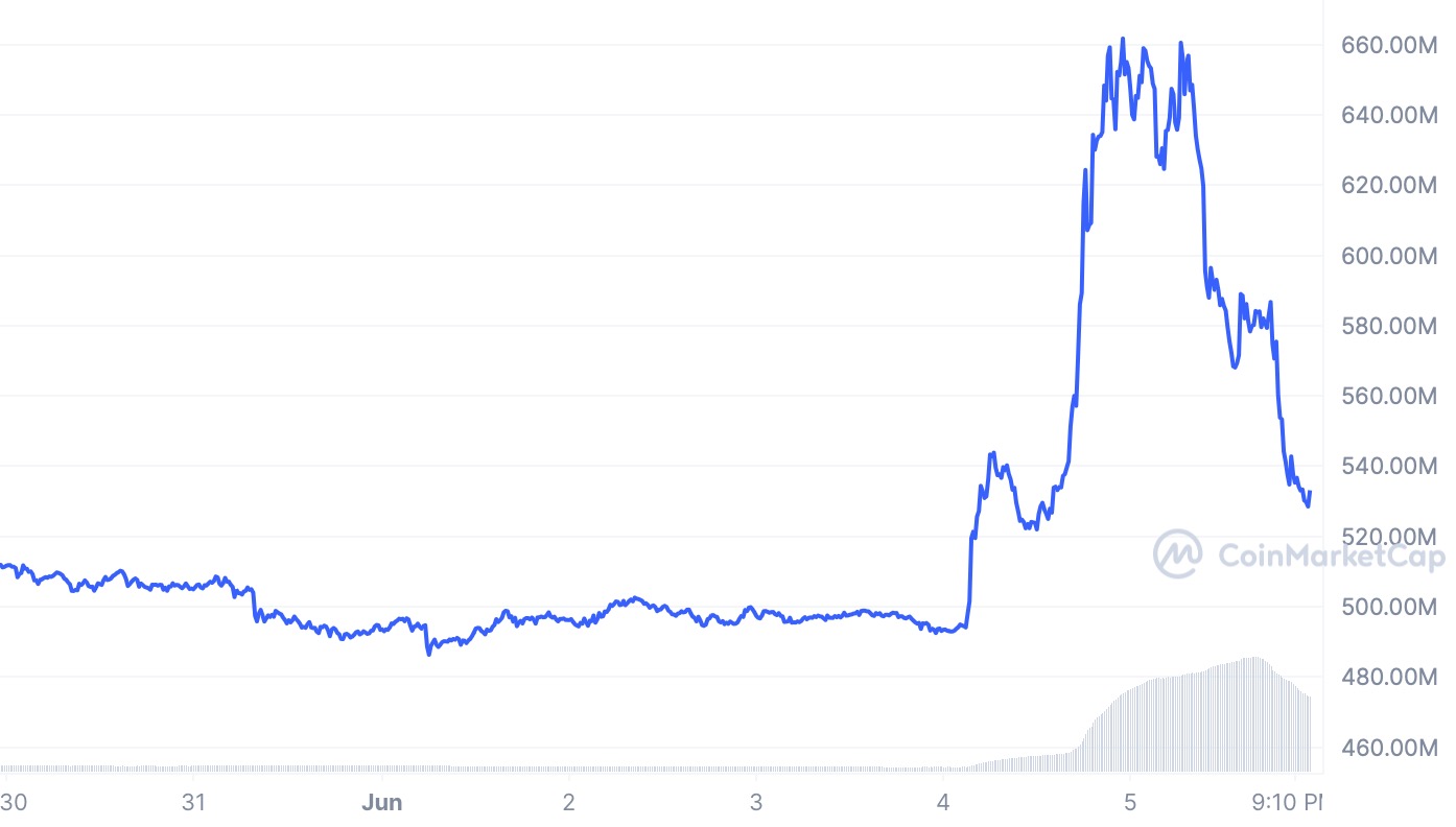 Този скок се дължи основно на повишаването на натиска за покупки, вследствие на което пазарната капитализация на LUNC доближи към $660 милиона. По данни на CoinMarketCap токенът е привлякъл над $162 милиона единствено за един ден.