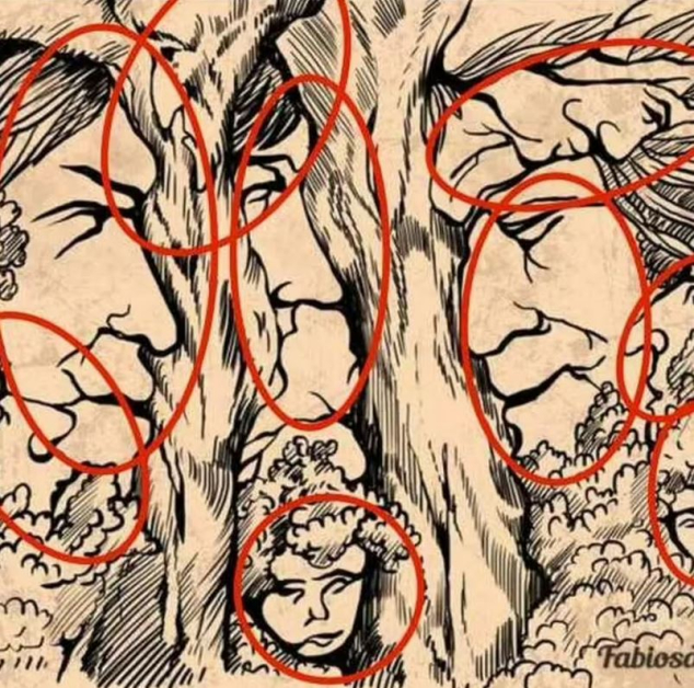 На изображението има елементарна горска сцена, вашата задача е да опитате да забележите всичките скрити 9 лица за по-малко от 19 секунди.