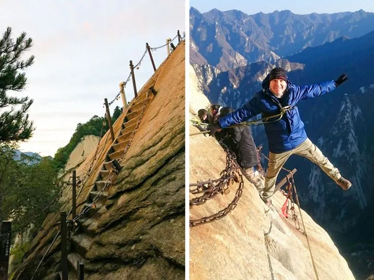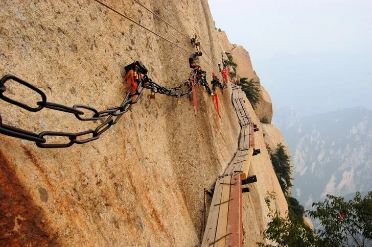 Тази пътека, водеща към върха на планината Хуа, се назовава „ Пътят към парадайса “. Стълбите са изсечени напряко в скалата, до момента в който стоманените вериги служат като парапети. По-рано тази планина се е изкачвала единствено поклонници, тъй като тя е една от 5-те свещени планини на даоизма в Китай. Днес този път към парадайса е отворен и за туристи.