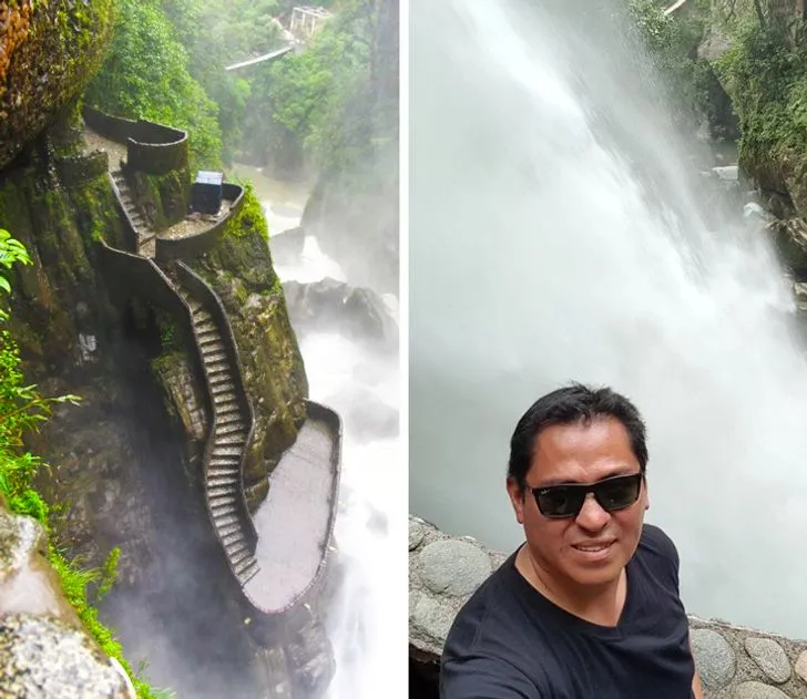 Можете да стигнете до водопада, наименуван „ Дяволският казан “ (Pailon del Diablo) в Еквадор, като се изкачите по антично каменно стълбище. То се приближава доста покрай дефиле, където водата тече с изключителна мощ.