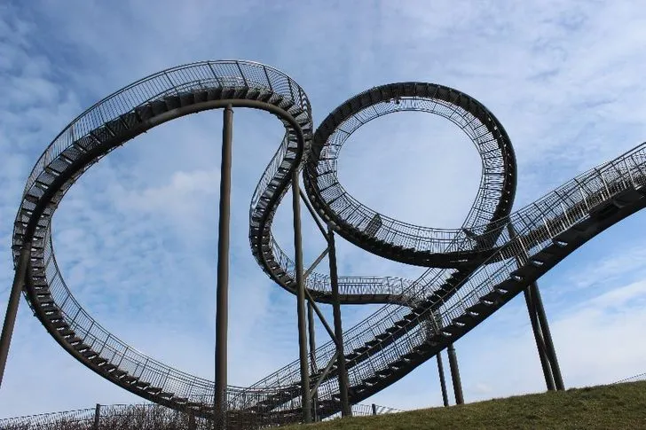 Това извънредно стълбище към този момент се трансформира в една от най-известните забележителности на Дуйсбург, Германия. Името му също е извънредно – „ Тигър и костенурка “.